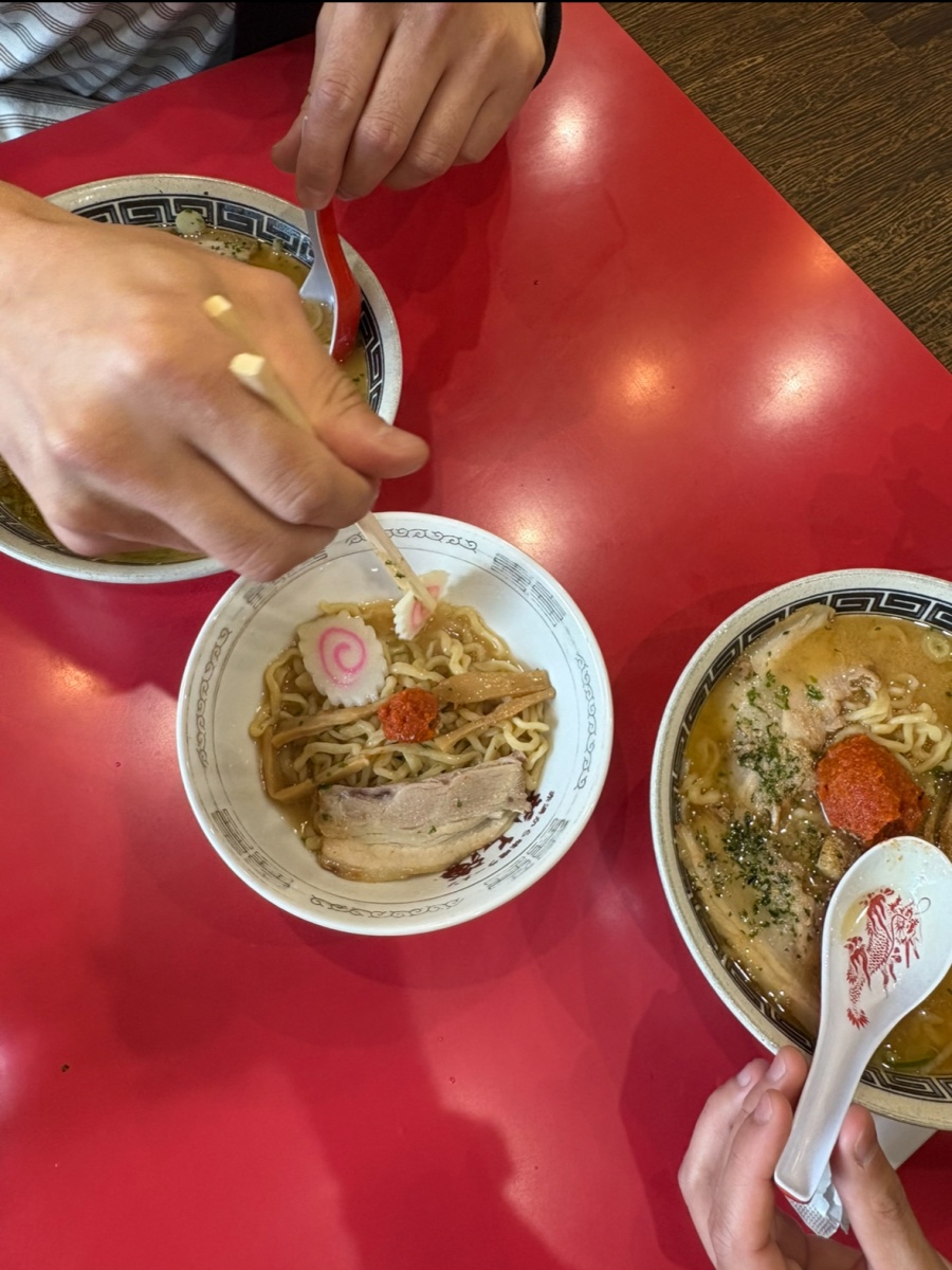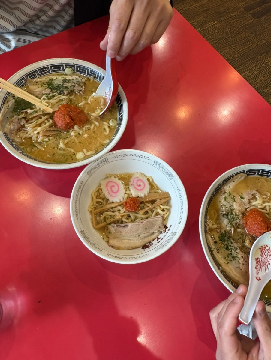 お店では大盛りを2杯頼んで、私はその大盛りを分けてもらって、店長とみさわさんがミニラーメンを作ってくれました笑