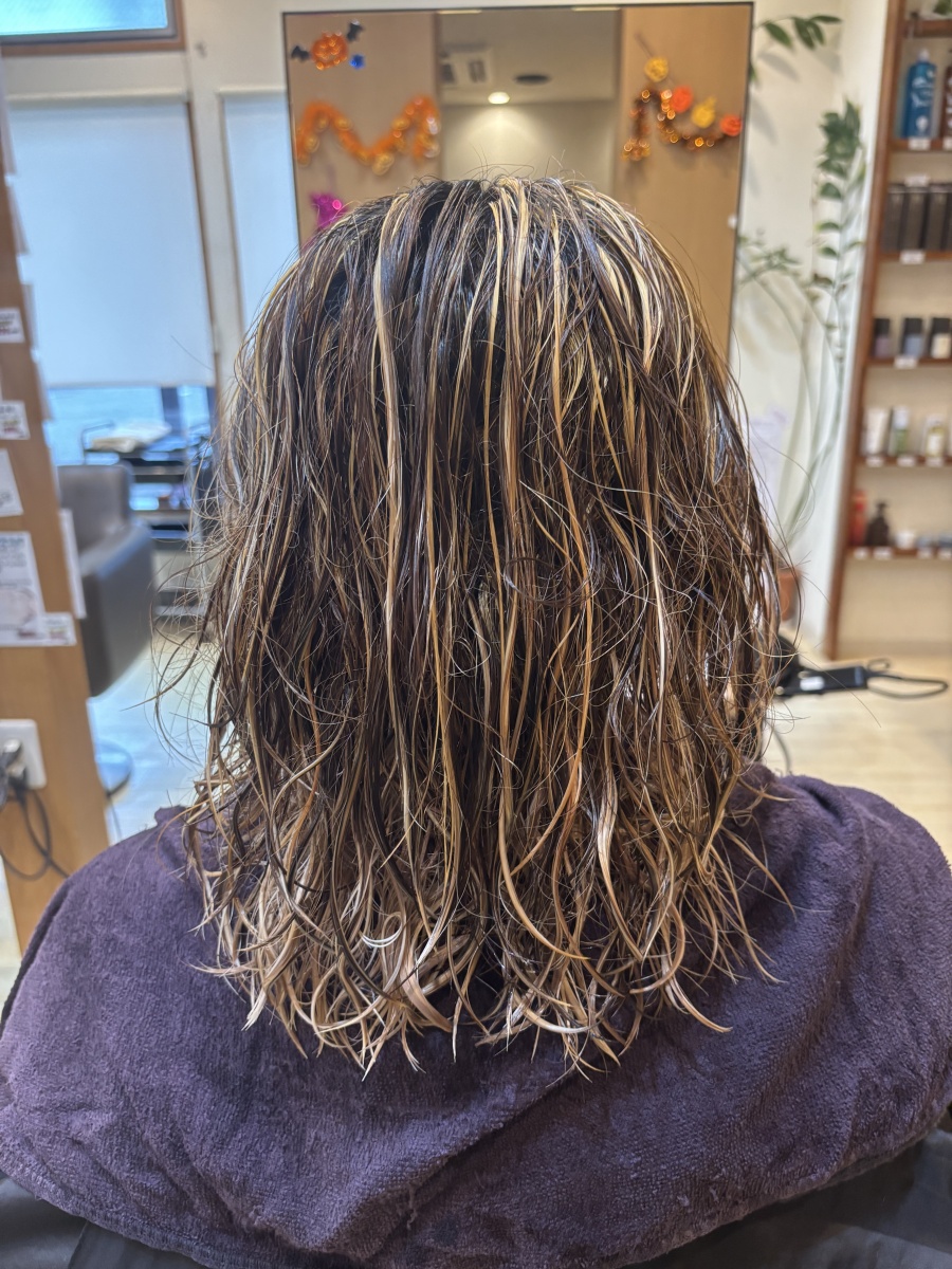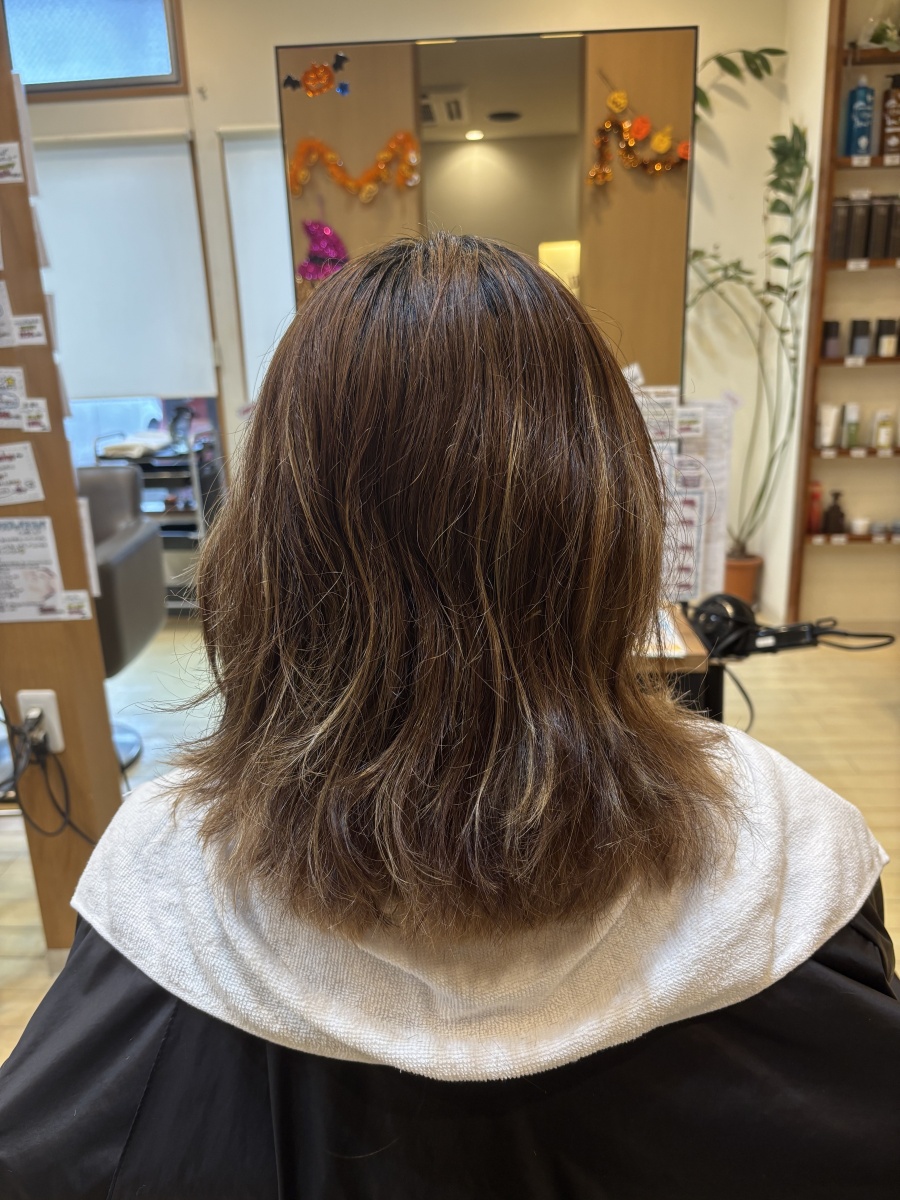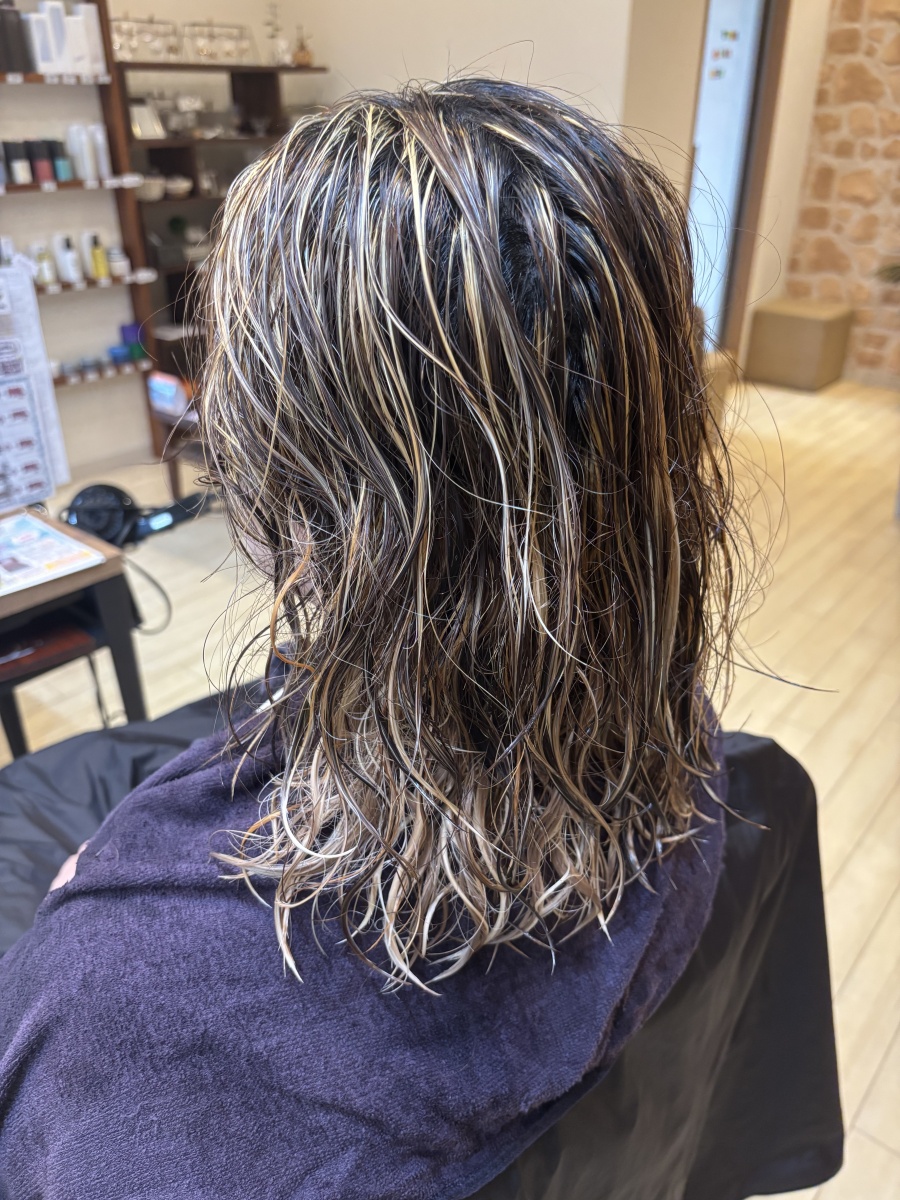 元々ハイライトが入っていた髪に、プラスでハイライトを入れる事により立体感がアップします!