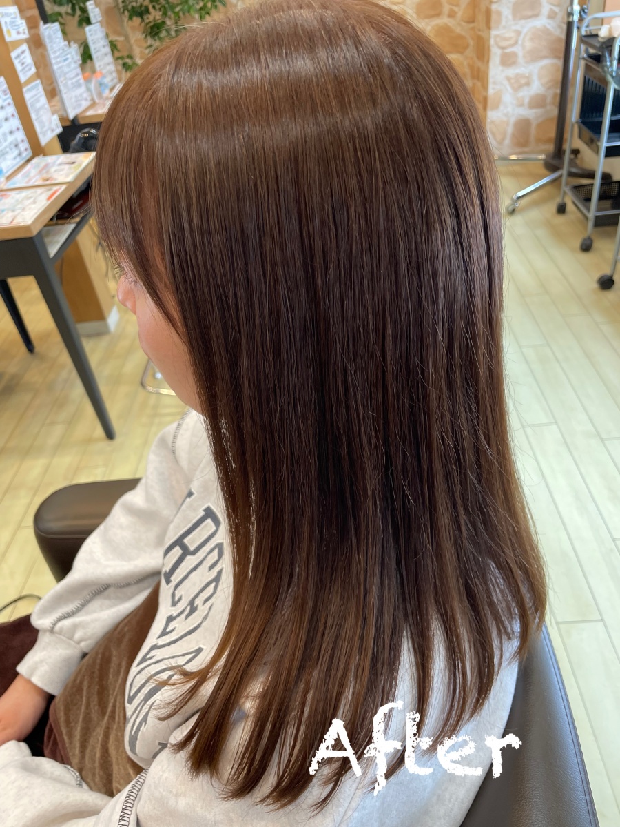 温かみがあって、肌なじみもいいのでこれから卒業して初めてカラーするお客様も挑戦しやすい色だと思います!