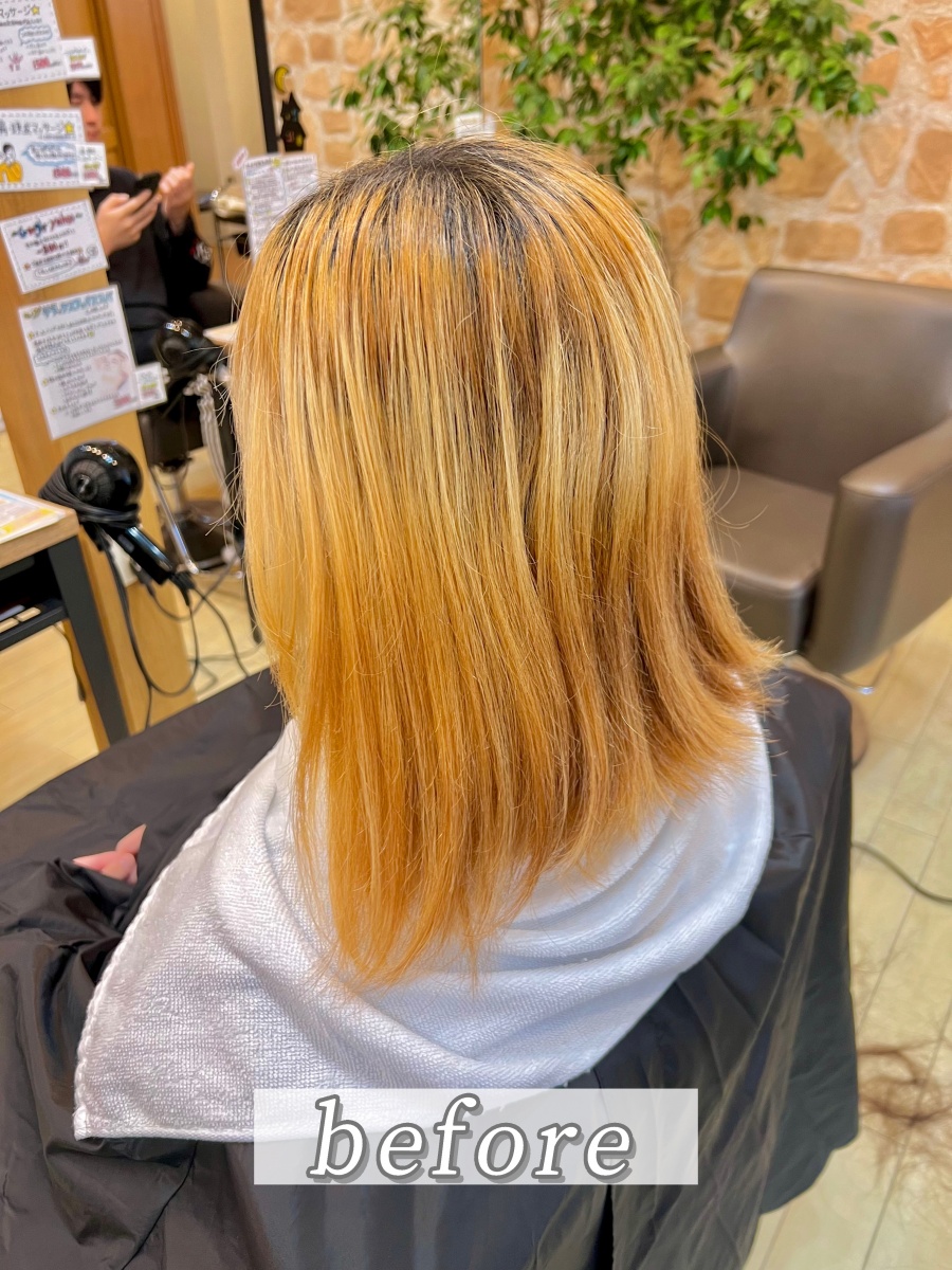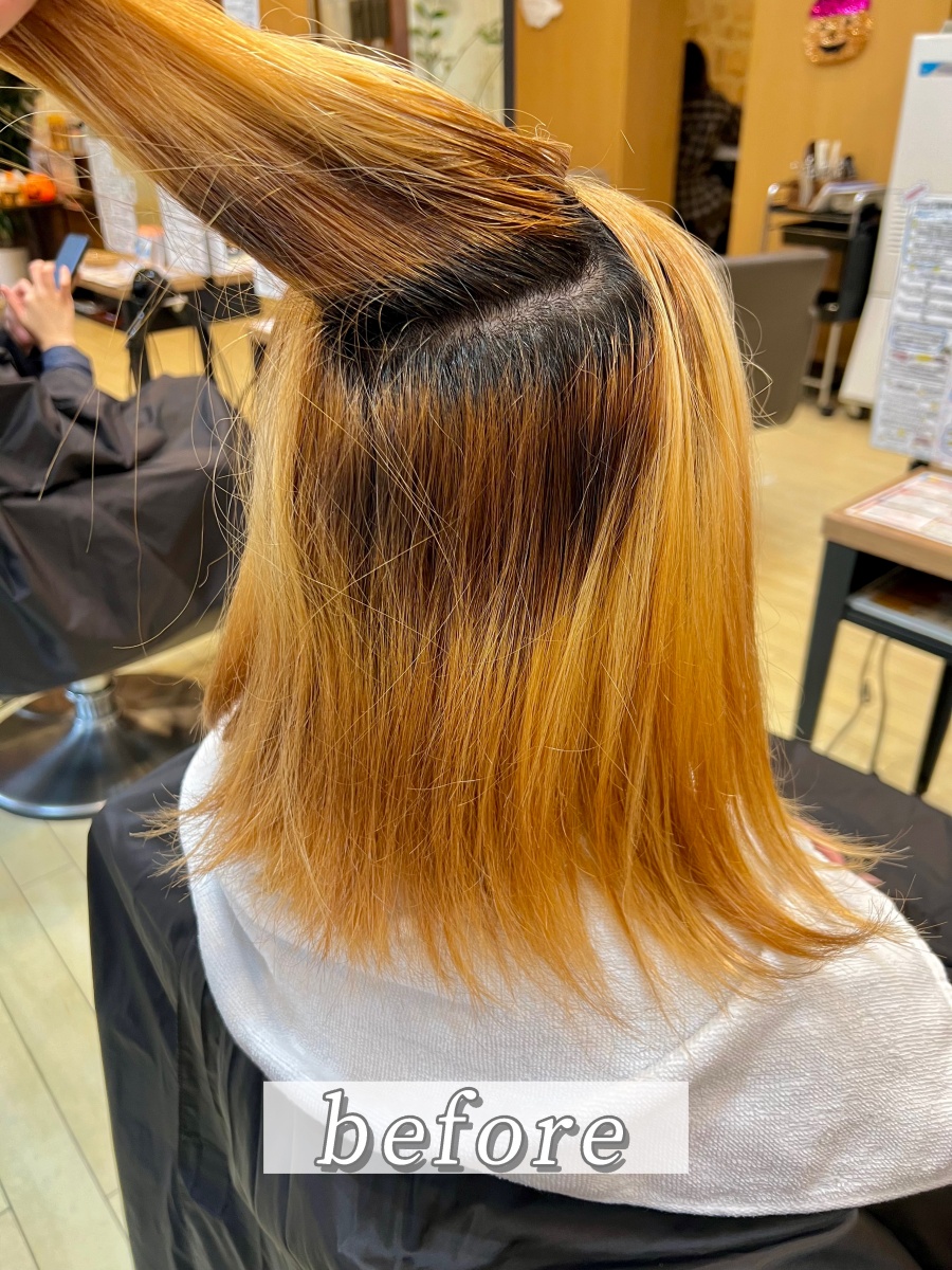 髪のコンディションを見極めながら薬剤を調整して、無理に抜かず“育てるブリーチ”でベースをつくりました!