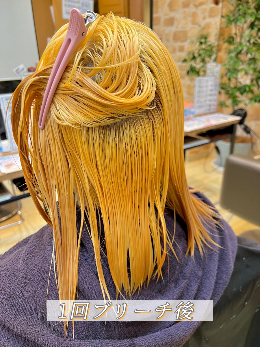 今回は1回のブリーチで、ダメージを最小限に抑えつつトーンを整えるところからスタート!